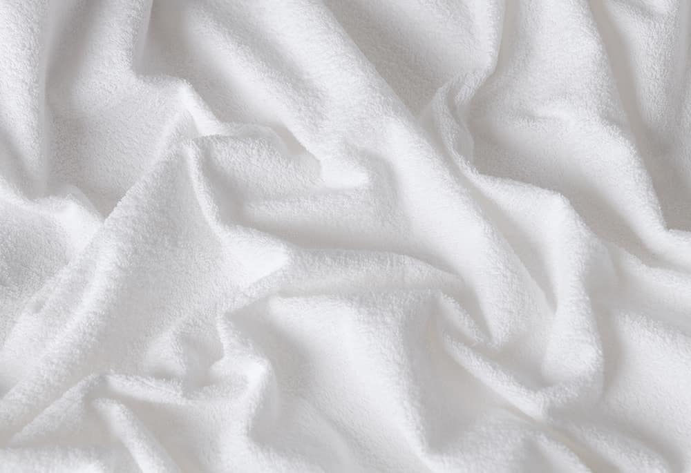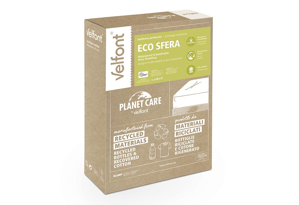 ECO SFERA - vandeniui atspari ir itin kvėpuojanti kilpinio rankšluosčio čiužinio apsauga, pagaminta iš GRS sertifikuoto perdirbto poliesterio ir medvilnės.