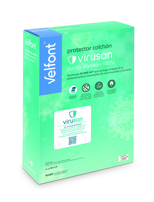 Virusan čiužinio apsauga yra pagaminta iš 100% medvilnės megzto audinio su Virusan antibakteriniu ir virusus mažinančiu apdorojimu. Tai garantuoja čiužinio higieną, nes apsaugo jį vientisai, išlaikant nepriekaištingą būklę ilgesnį laiką. Jis sujungia visišką apsaugą nuo skysčių ir drėgmės su dideliu pralaidumu orui, leidžiančiu orui praeiti.